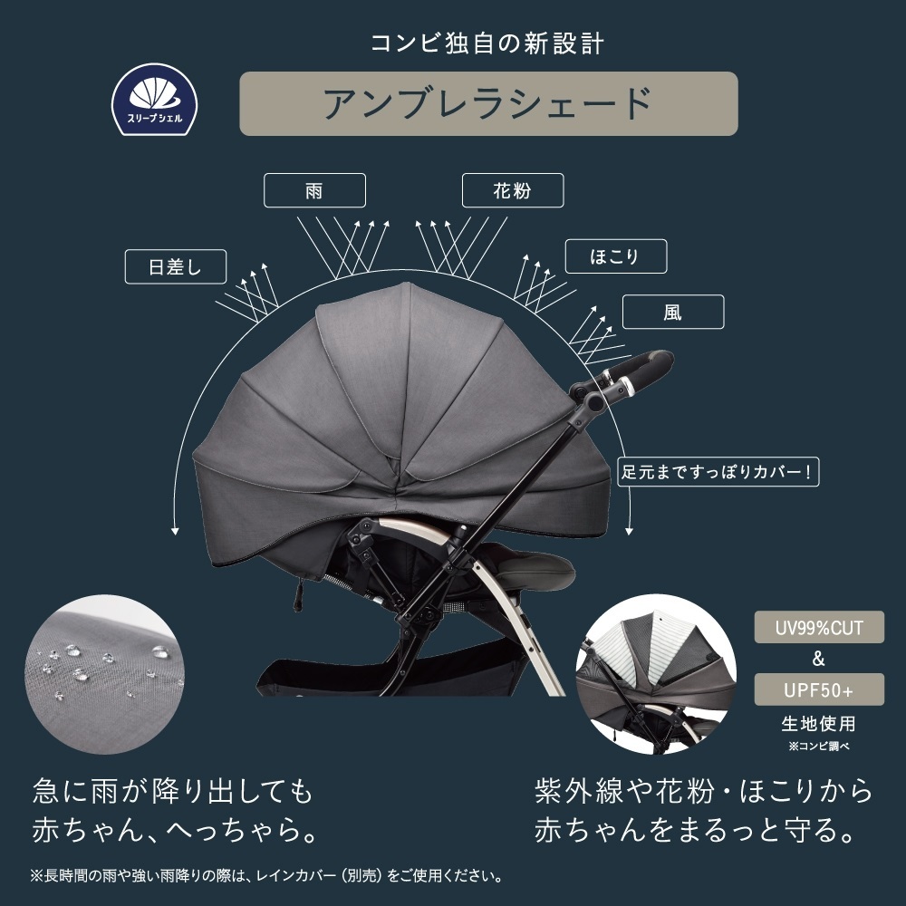 日差しはもちろん、突然の雨からも赤ちゃんを守ってくれます。